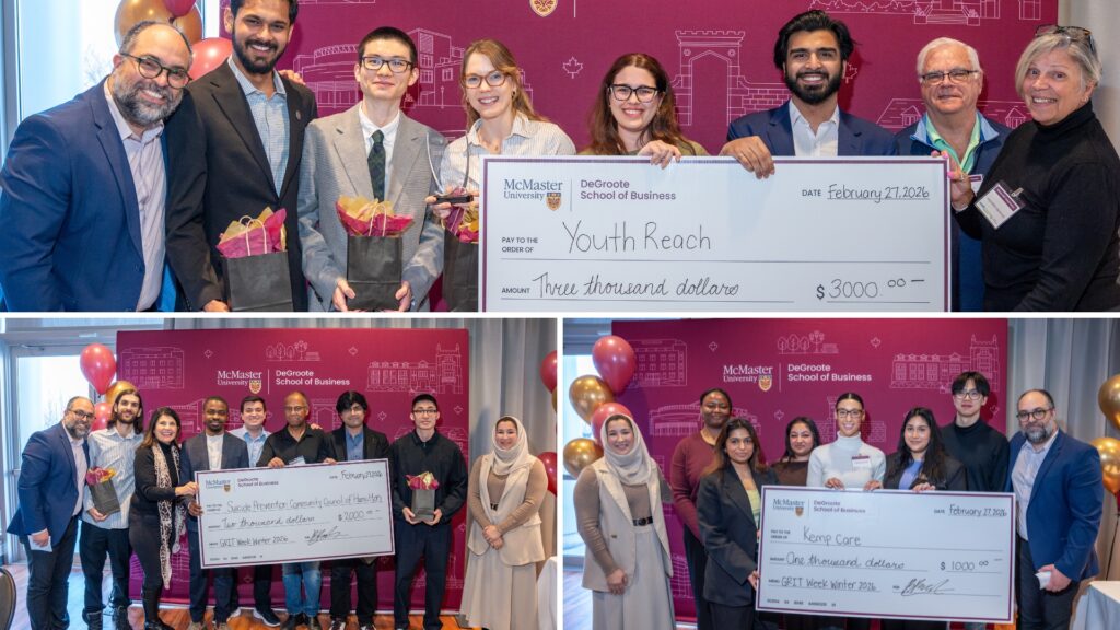 Even DeGroote alumnus Jeff Maimer of MS Canada, who came at the beginning of GRIT Week as a guest speaker, reminded students why work like this matters. “A strong business plan ensures that you’re clear about what your objective is and how you’re going to get there,” he said. For him, using his MBA skills in the nonprofit sector felt deeply meaningful: